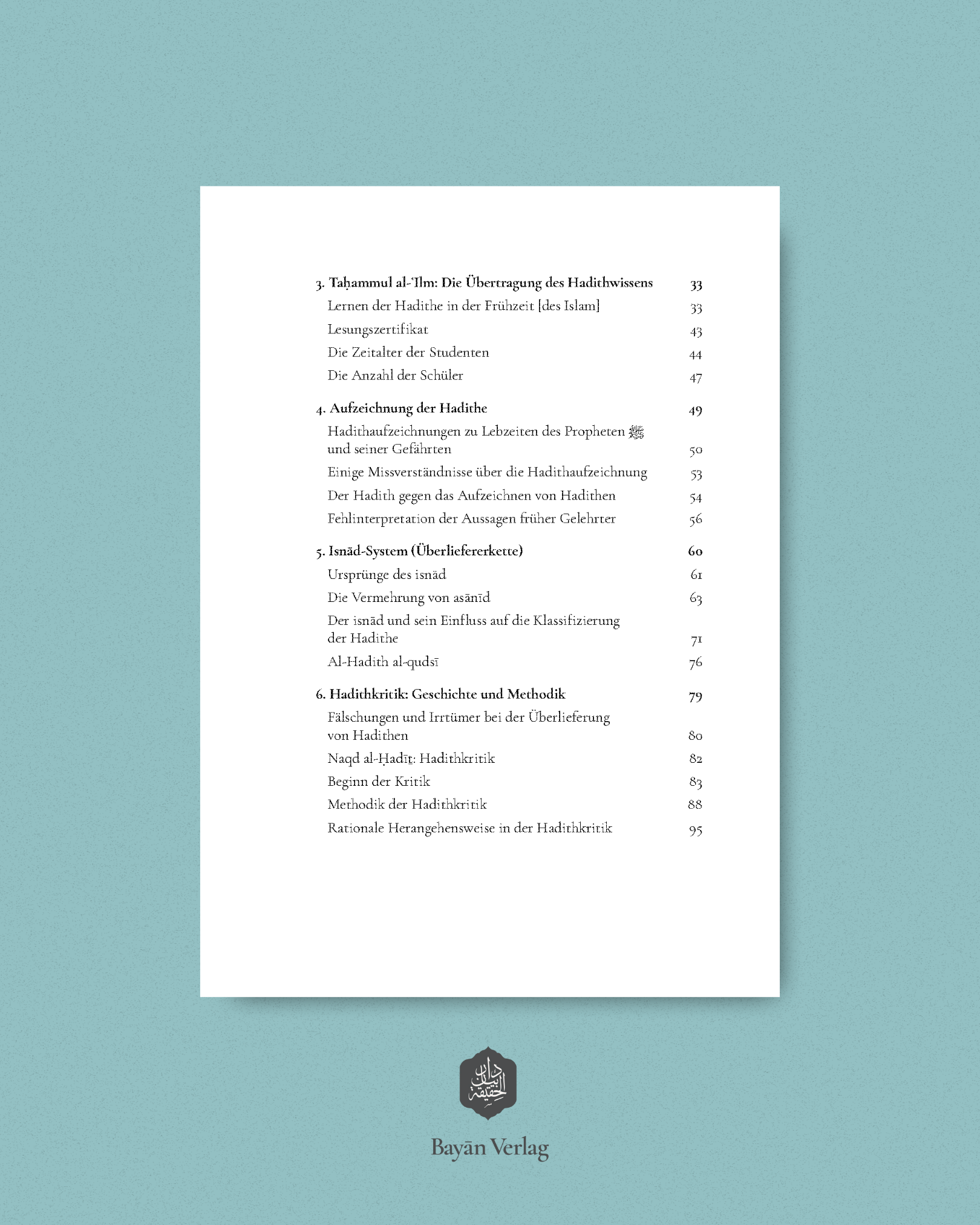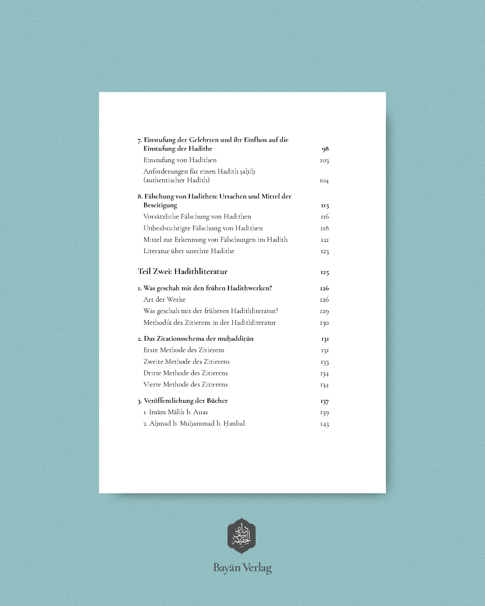 Titel: Grundlagen der Hadithwissenschaft – Studien zur Methodologie und Literatur der Hadithüberlieferung Autor: Muṣṭafā al-Aʿẓamī Einband: Flexocover Erscheinungsdatum: 08.08.2025 Seitenanzahl: 200 (Printausgabe)Maße (L/B/H): 21,7/15,3/1,5 cm Gewicht: 232 g Auflage: 1. Auflage ISBN: 978-3-9823830-2-6