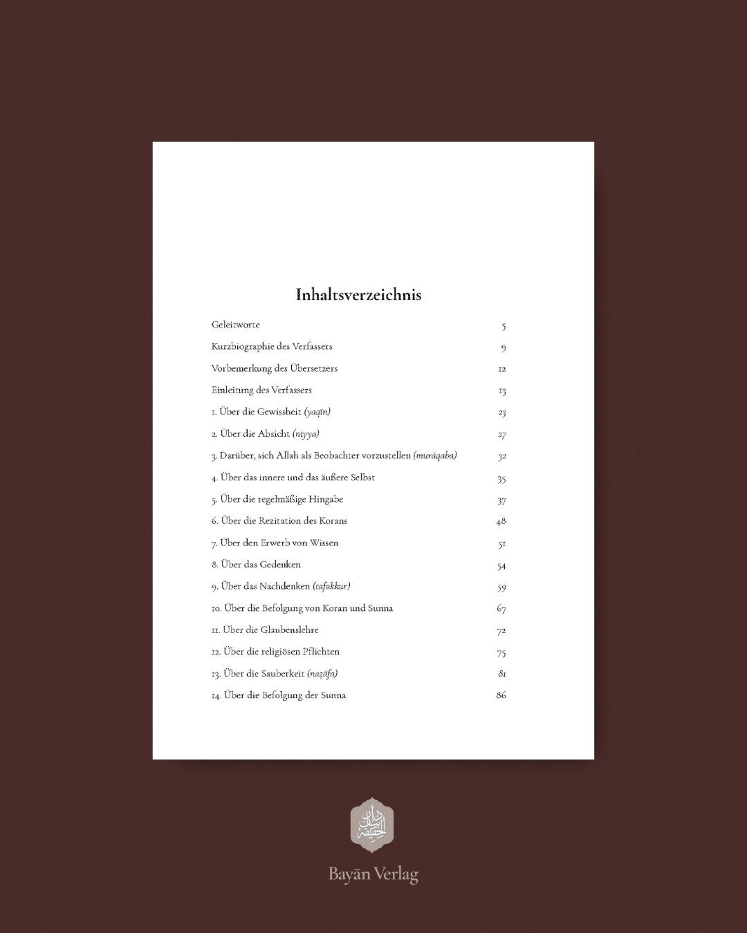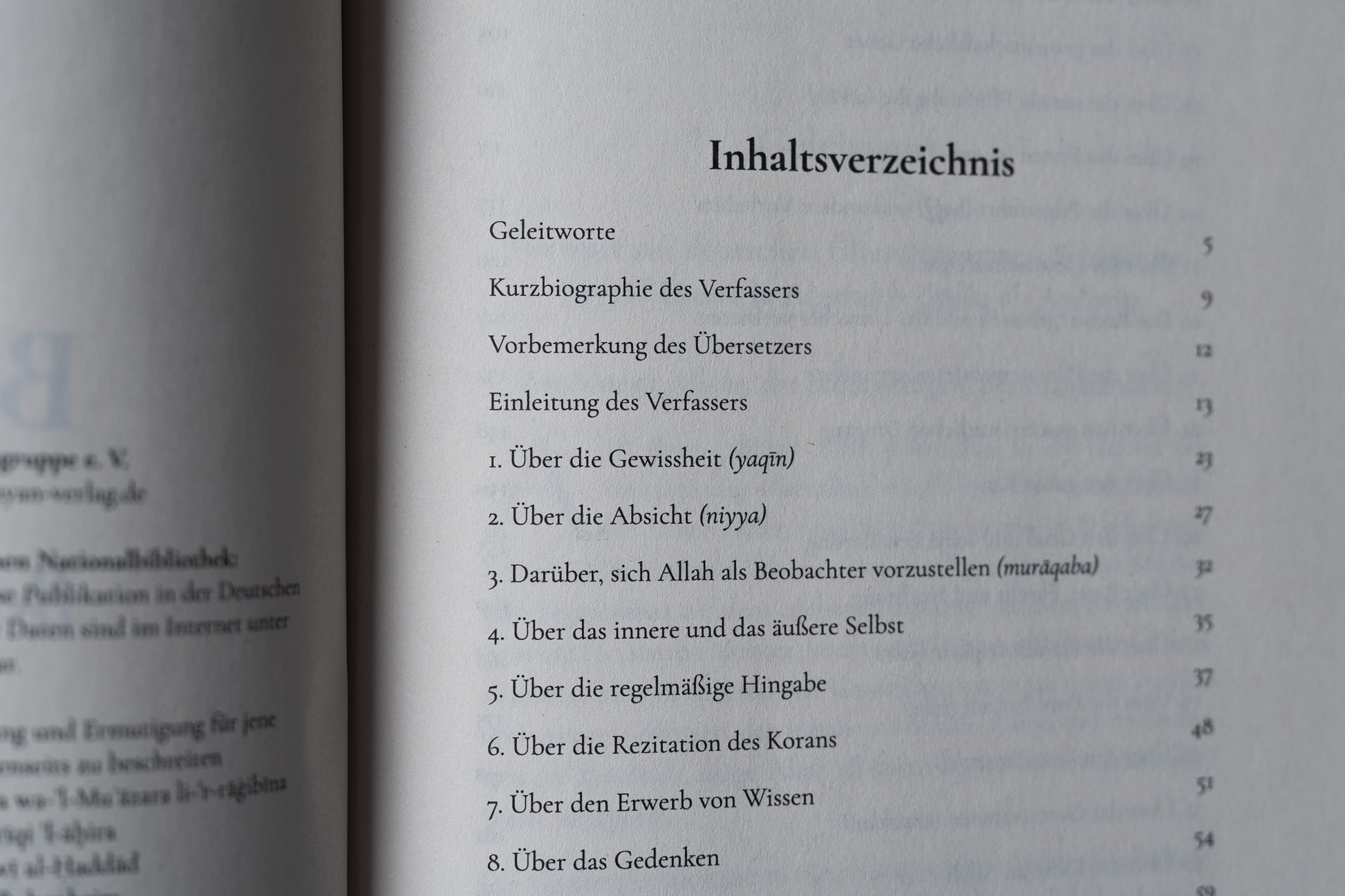 Imām al-Ḥaddāds Bücher zählen zu den bekanntesten und beliebtesten Werken im Bereich der islamischen Spiritualität, fast 300 Jahre nach ihrem Entstehen. Mit dieser Übersetzung liegt zum ersten Mal in deutscher Sprache das „Buch des Beistands“ vor: ein Buch, das die Prinzipien des Taṣawwuf in kurzen, praxisnahen Kapiteln verdeutlicht. Ein praktischer Reiseführer für diejenigen, die sich bewusst auf die Reise durch diese Welt, hin zu ihrem Schöpfer, aufmachen.