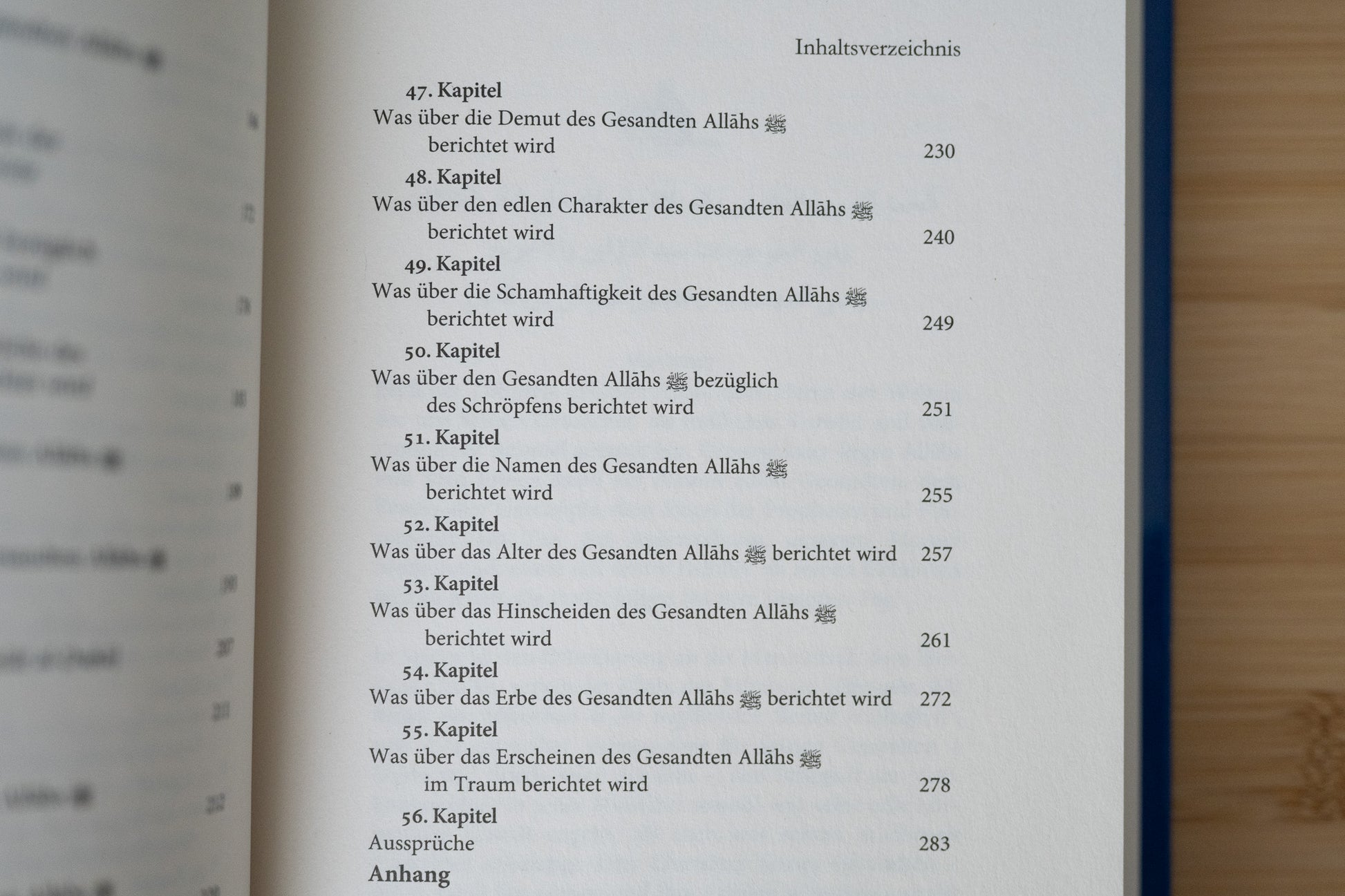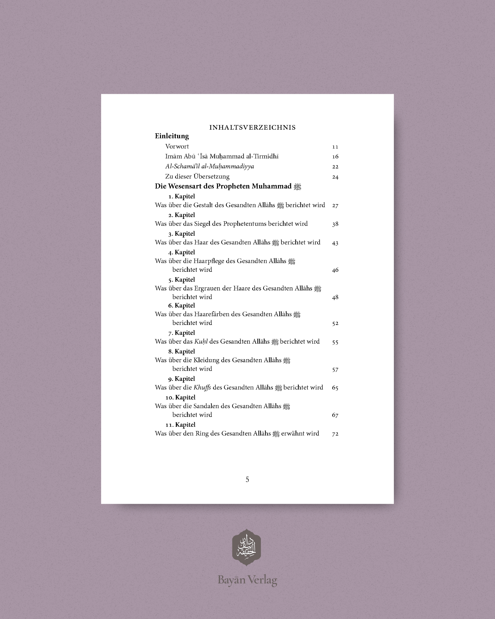 Imām Abū ‘Īsā al-Tirmidhīs (gest. 892 n.Chr.) hier unter dem Titel So war der Prophet – Die Wesensart des Propheten Muhammad ﷺ erstmals in deutscher Übersetzung präsentiertes Werk Al-Schamā’il al-Muhammadiyya ist das historisch früheste dieser Gattung von speziell der Person des Propheten – der Segen und Friede seien auf ihm – gewidmeten Hadīth-Sammlungen. Es beschreibt in fünfundfünfzig Kapiteln detailliert sowohl das Äußere des Propheten, seine edle Gestalt und seine Kleidung, als auch seinen Charakter, seine alltäglichen Lebensgewohnheiten und -umstände, sein Gebet, sein Fasten, seine freiwilligen Gottesdienste, den Umgang mit seiner Familie, seinen Gefährten und anderen Menschen, sowie zahlreiche weitere Aspekte seiner Persönlichkeit, bis hin zu seinem Tod, seinem Nachlaß, sowie dem Erscheinen des Propheten – Segen und Friede seien auf ihm – im Traum.