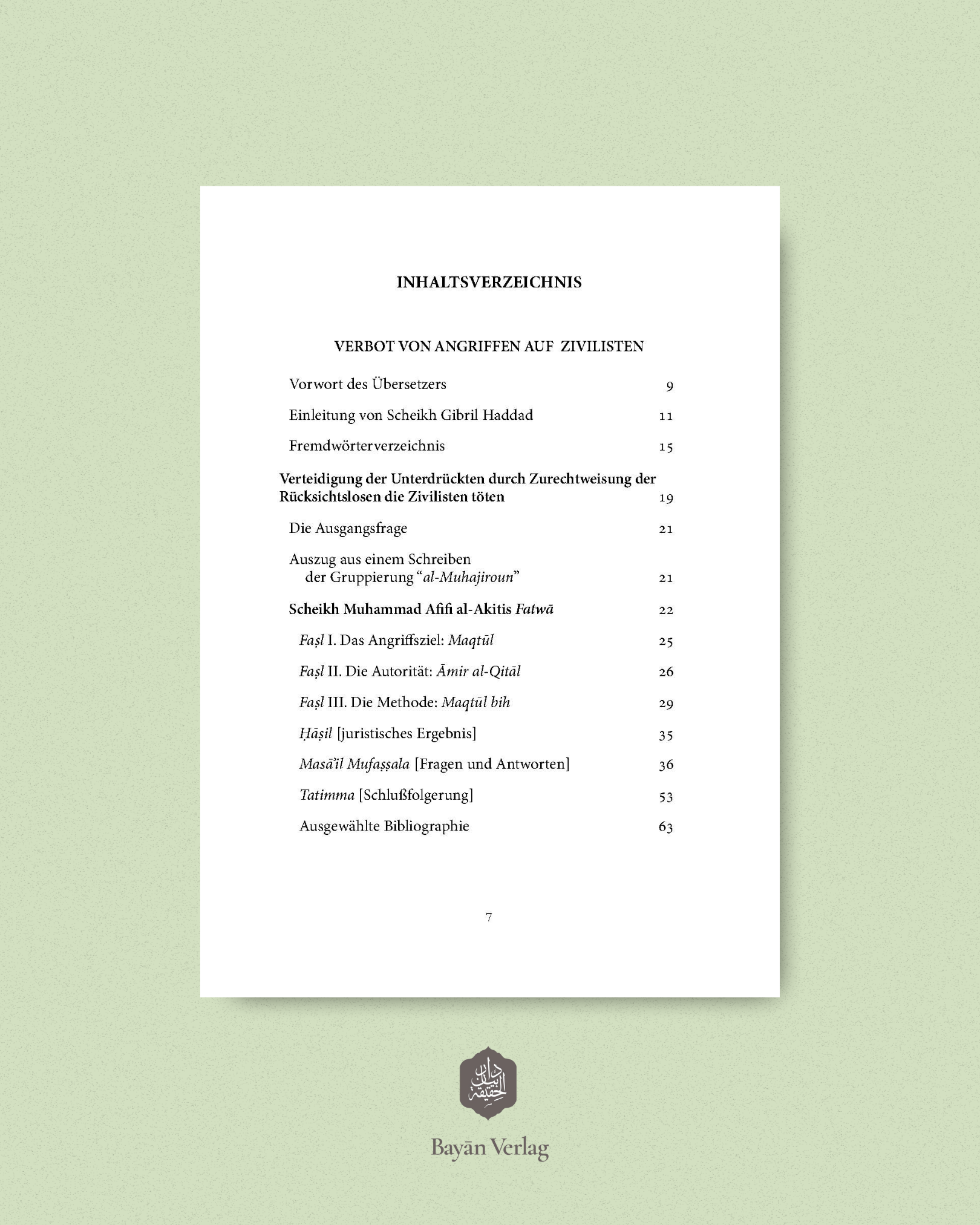 Scheikh Muhammad Afifi al-Akitis islamisches Rechtsgutachten unter dem Titel Verteidigung der Unterdrückten durch Zurechtweisung der Rücksichtslosen die Zivilisten töten ist eine Antwort auf die Heimsuchungen und Konflikte, unter denen die Gemeinschaft der Muslime und die ganze Menschheit tagein und tagaus zu leiden haben – verursacht von jenen, die bewußt oder aus Unwissenheit den juristischen Diskurs hinsichtlich der Kriegsführung im Islam aus seinem Zusammenhang reissen und mißbrauchen, um damit ihr haßerfülltes Tun zu rechtfertigen.